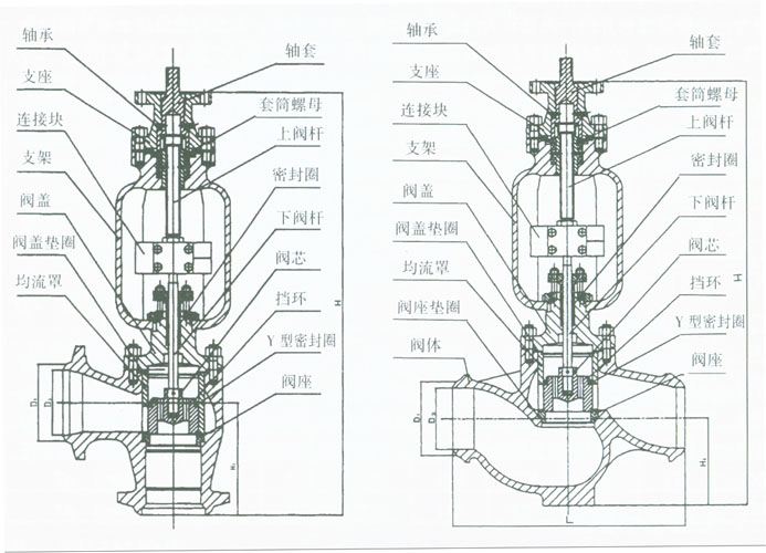 為了提高發電廠的經濟性,汽輪機都設有回熱系統.即裝有高低壓加熱器,為保證加熱器有水位運行,防止加熱器無水位運行時,汽輪機上一級抽汽竄入下一級抽汽而降低汽輪機效率和設備的安全性,在加熱器的疏水系統中都設有疏水調節閥,它根據加熱器的水位信號,自動開關疏水調節閥門開度,使加熱器水位始終保持在一定范圍之內。疏水調節閥工作條件很差,很多狀況下在兩相流體下工作(即汽水混合狀態),而且又是屬于節流狀態下運行,汽蝕相當嚴重,汽蝕到一定程度就起不到疏水調節閥的作用,在這種狀況下.加熱器就不能保證有水位運行,這樣就降低了汽輪機運行的經濟性。由此可見,選擇汽蝕小,噪聲低,結構簡單,性能可靠的疏水調節閥就特別重要。針對上述工況要求,我廠研究設計制造了新型疏水調節閥,它是在原疏水調節閥的基礎上,并吸取國外經驗,在結構上,材料上都進行了改革,使該閥具有良好的工作性能。由于采用合理的閥芯和閥座接觸面角度,所以該閥在關閉狀態下沒有泄漏現象;制造均流罩和閥芯的材料采用了優質不銹鋼材料,即使在兩相流動和節流狀態下運行,汽蝕速度也是相當緩慢,這樣就延長了閥門的使用壽命,噪聲也很小。閥門設計均采用裝拆簡便的結構,當內部零件損壞,只要拆下閥蓋螺帽,即可依次取出各個零件,隨意調換任何零件,檢修非常方便。